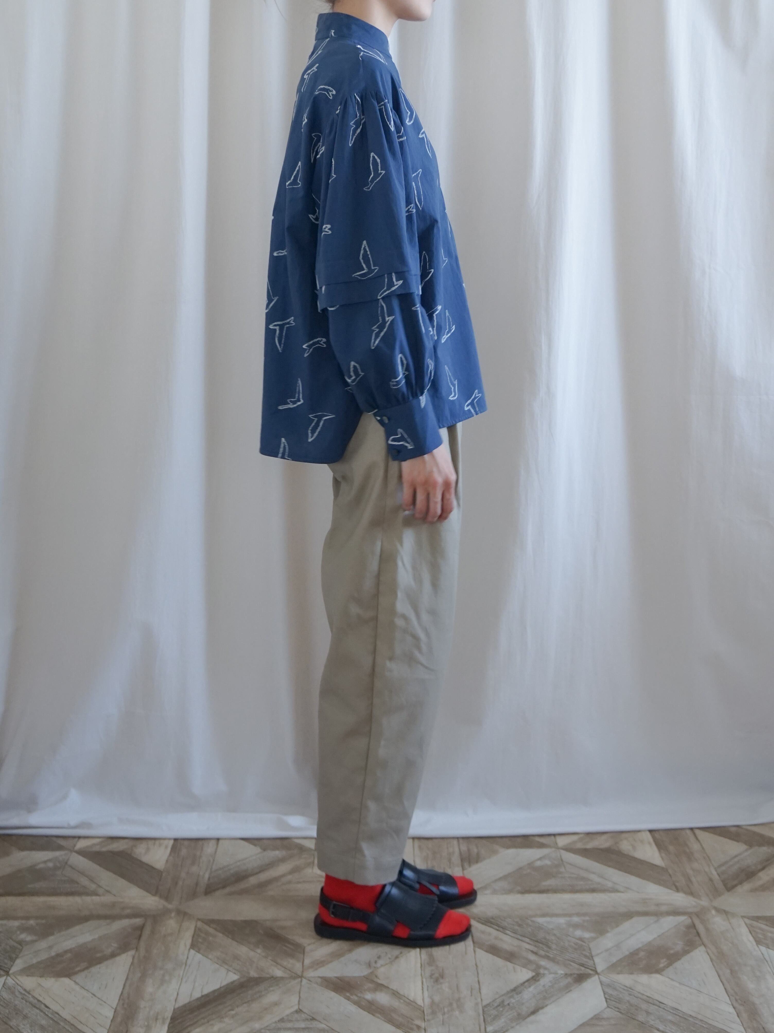 ブラウスはオリエンタルな雰囲気と、ボリュームのある袖が特徴です。