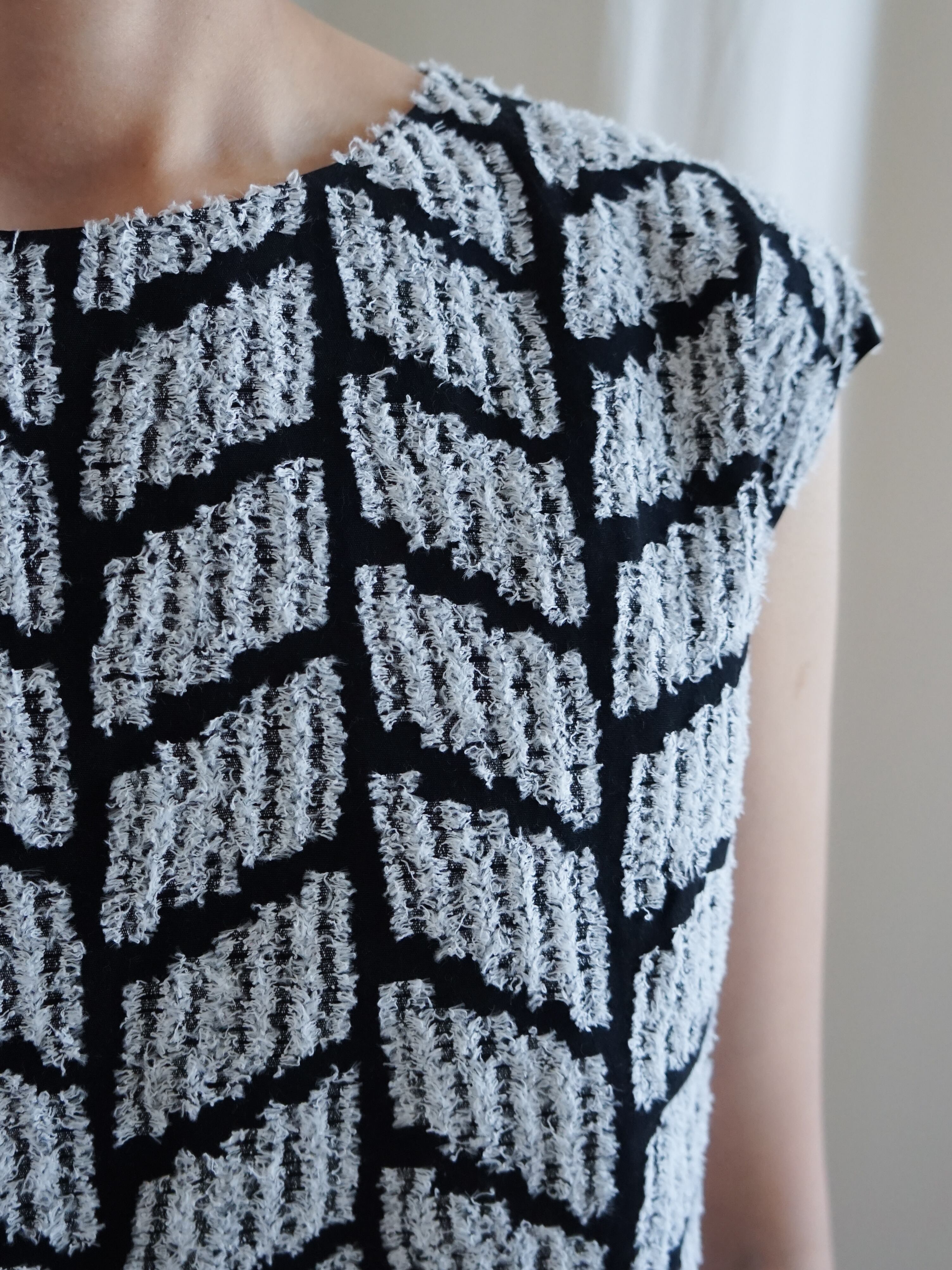 織りの途中の糸をカットすることで、その糸端がフリンジのように見える、ジャカードの技法です。